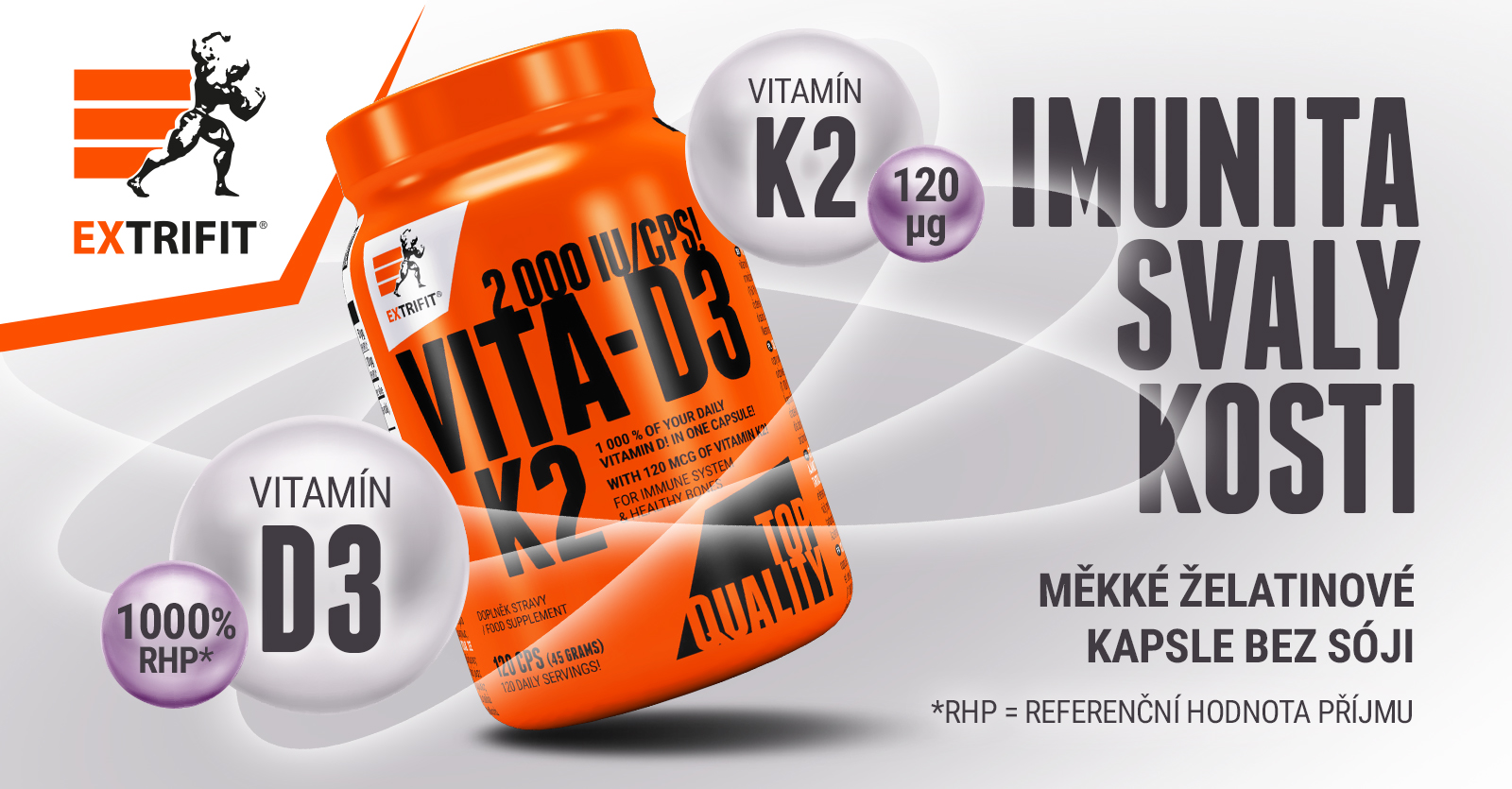 Extrifit Vita D3+K2 ti dává 120 kapslí, což je na čtyři měsíce. Přesně na celou zimu. Za pár korun denně máš pojistku proti únavě, lepší imunitu, podporu testosteronu a celkově větší šanci, že z tebe zima neudělá zimomřivou amébu.